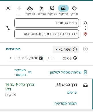 מרחק בין שני הדירות